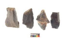| Description / विवरण | There are n 4 utilized flake cores. There are multi directional irregular scar pattern on both dorsal and ventral face of the flake cores. Two have flat base and two have blunted edges. |