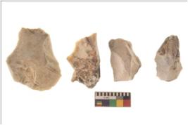 | Description / विवरण | Specimen of a cores with several broad fluted marks and some of them are tapering at one end. |