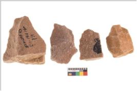| Description / विवरण | There are n-4 of utilized flake cores. There are multidirectional irregular dominant scar pattern on both dorsal and ventral face of the cores. |