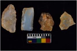| Description / विवरण | There are n 4 flakes tool; there are large flakes with sides trimmed, Marks of secondary flaking are present on the both the faces. The dorsal is relatively flat. One is pointed functional top. |