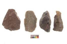 | Description / विवरण | There are n 4 utilized flake cores. There are multi directional irregular scar pattern on both dorsal and ventral face of the flake cores. Two have flat base and two have blunted edges. |
