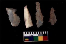 | Description / विवरण | There are n 4 Flake tool; There are multidirectional irregular scar pattern on them. few have blunt edges, Some of them are tapering at one end. |