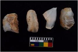 | Description / विवरण | There are n 4 flakes tool; there are large flakes with sides trimmed, Marks of secondary flaking are present on the both the faces. The dorsal is relatively flat. |
