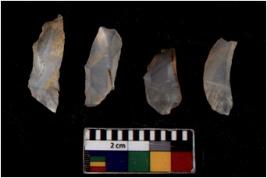 | Description / विवरण | There are n 4 Flake tool; There are multidirectional irregular scar pattern on them. few have blunt edges, Some of them are tapering at one end. |