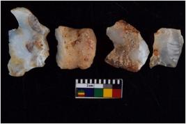 | Description / विवरण | There are n 4 flakes tool; there are flakes tool with prominent flaking marks. It made up of a large flakes with sides trimmed. It is rectangular in shaped. |