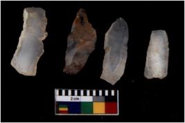 | Description / विवरण | There are n 4 Flake tool; There are multidirectional irregular scar pattern on them. few have blunt edges, Some of them are tapering at one end. |