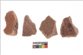 | Description / विवरण | There are n-4 of utilized flake cores. There are multidirectional irregular dominant scar pattern on both dorsal and ventral face of the cores. |