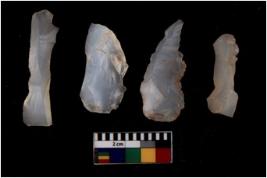 | Description / विवरण | There are n 4 Flake tool; There are multidirectional irregular scar pattern on them. few have blunt edges, Some of them are tapering at one end. |