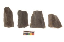 | Description / विवरण | There are n 4 utilized flake cores. There are multi directional irregular scar pattern on both dorsal and ventral face of the flake cores. They have flat base and blunted edges. |