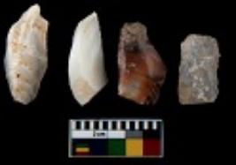 | Description / विवरण | There are n 4 utilized flake cores. There are multi directional irregular scar pattern on them. Two are tapering at one end and two have sharp edges. |