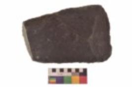 | Description / विवरण | Specimen of an handaxe with one elongated side for holding purpose. It is blackish in colour and smooth in texture. |