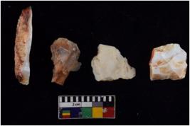 | Description / विवरण | There are n 4 flakes tool; there are triangular flake tool having flat thick body and deep long flake scar is seen on the upper side. It has flat thick bottom and pointed functional top |
