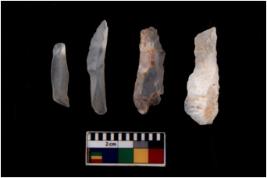 | Description / विवरण | There are n 4 flakes tool; there are large flakes with sides trimmed, Marks of secondary flaking are present on the both the faces. |