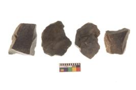 | Description / विवरण | There are n 4 utilized flake cores. There are multi directional irregular scar pattern on both dorsal and ventral face of the flake cores. Two have flat base and two have blunted edges. |
