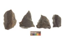 | Description / विवरण | There are n 4 utilized flake cores. There are multi directional irregular scar pattern on both dorsal and ventral face of the flake cores. Two have sharp edges and two have blunted edges. |