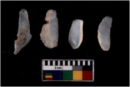 | Description / विवरण | There are n 4 Flake tool; There are multidirectional irregular scar pattern on them. few have blunt edges, Some of them are tapering at one end. |
