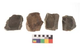 | Description / विवरण | There are n 4 utilized flake cores. There are multi directional irregular scar pattern on both dorsal and ventral face of the flake cores. Two are tapering at one end and two have blunted edges. |