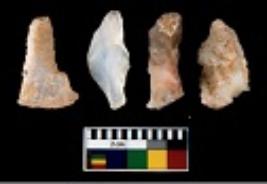 | Description / विवरण | There are n 4 utilized flake cores. There are multi directional irregular scar pattern on them. All of them are tapering at one end. |
