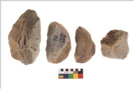| Description / विवरण | Specimen of a large flakes with sides trimmed. Marks of secondary flaking are present on the both the faces. The dorsal is relatively flat |