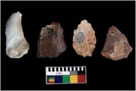 | Description / विवरण | There are n 4 utilized flake cores. Out of them one is made up of Chert and three are made up of Chalcedony. There are multi directional irregular scar pattern on them. One is tapering at one end and three have blunted edges. |