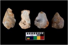 | Description / विवरण | There are n 4 utilized flake cores. There are multi directional irregular scar pattern on them. Three have blunted edges and one has round edge. |