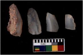 | Description / विवरण | There are n 4 Flake tool; There are multidirectional irregular scar pattern on them. few have blunt edges, Some of them are tapering at one end. |
