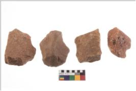 | Description / विवरण | There are n-4 of utilized flake cores. There are multidirectional irregular dominant scar pattern on both dorsal and ventral face of the cores. |