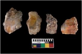 | Description / विवरण | There are n 4 utilized flake cores. There are multi directional irregular scar pattern on them. Three have flat base and one has blunted edge. |
