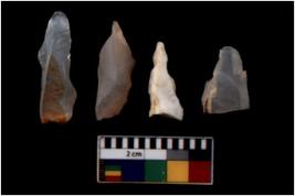 | Description / विवरण | There are n 4 flakes tool; there are large flakes with sides trimmed, Marks of secondary flaking are present on the both the faces. |