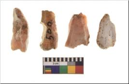 | Description / विवरण | Specimen of fluted cores having several broad fluted marks indicating the detached blades from it. |