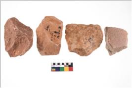 | Description / विवरण | There are n 4 cores. There are multi directional irregular scar pattern on both dorsal and ventral face of the cores. Some have blunted edges and some have round edges. |