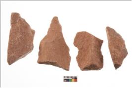 | Description / विवरण | There are n-4 of utilized flake cores. There are multidirectional irregular dominant scar pattern on both dorsal and ventral face of the cores. |