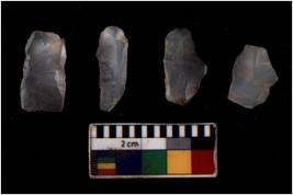 | Description / विवरण | There are n 4 flakes tool; there are large flakes with sides trimmed, Marks of secondary flaking are present on the both the faces. |