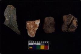 | Description / विवरण | There are n 4 flakes; there are multidirectional irregular scar pattern on them; made of short flakes and all four have blunted edges. |