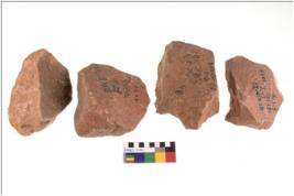 | Description / विवरण | There are n 4 cores. There are multi directional irregular scar pattern on both dorsal and ventral face of the cores. Some have blunted edges and some have round edges. |