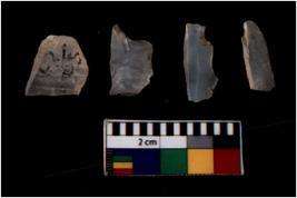 | Description / विवरण | There are n 4 flakes tool; there are large flakes with sides trimmed, Marks of secondary flaking are present on the both the faces. |