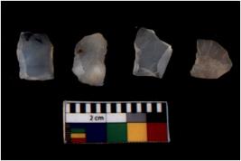| Description / विवरण | There are n 4 Flake tool; There are multidirectional irregular scar pattern on them. few have blunt edges, Some of them are tapering at one end. |