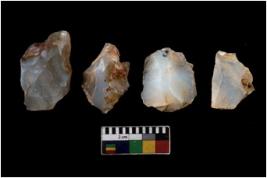 | Description / विवरण | There are n 4 utilized flake cores. There are multi directional irregular scar pattern on them. One is tapering at one end and three have blunted edges. |