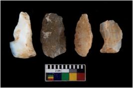 | Description / विवरण | There are n 4 utilized flake cores. There are multi directional irregular scar pattern on them. Three are tapering at one end and one has sharp edge. |