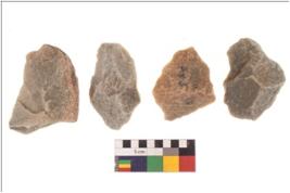 | Description / विवरण | There are n 4 flakes tool; there are multidirectional irregular scar pattern on them; made of short flakes and all four have tapering edges. |