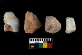 | Description / विवरण | There are n 4 utilized flake cores. There are multi directional irregular scar pattern on them. Three have flat base and one has blunted edge. |