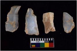 | Description / विवरण | There are n 4 flakes; there are multidirectional irregular scar pattern on them; made of short flakes and all four have blunted edges. |