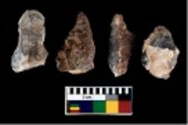 | Description / विवरण | There are n 4 utilized flake cores. There are multi directional irregular scar pattern on them. Two are tapering at one end and two have sharp edges. |