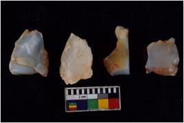 | Description / विवरण | There are n 4 flakes; there are multidirectional irregular scar pattern on them; made of short flakes and all four have blunted edges. |
