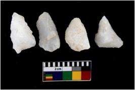 | Description / विवरण | There are n 4 utilized flake cores. Three are tapering at one end and one has blunted edge. |