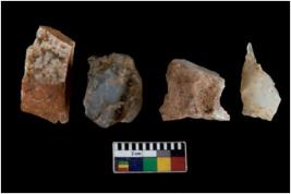 | Description / विवरण | There are n 4 utilized flake cores. There are multi directional irregular scar pattern on them. One has sharp edge and three have blunted edges. |