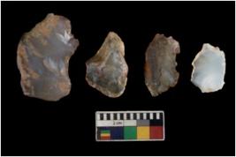 | Description / विवरण | There are n 4 utilized flake cores. There are multi directional irregular scar pattern on them. One is tapering at one end and three have blunted edges. |
