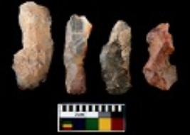 | Description / विवरण | There are n 4 utilized flake cores. Out of them one is made up of Chert and three are made up of Chalcedony. There are multi directional irregular scar pattern on them. All of them are tapering at one end. |
