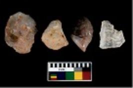 | Description / विवरण | There are n 4 utilized flake cores. There are multi directional irregular scar pattern on them. Three have blunted edges and one has round edge. |