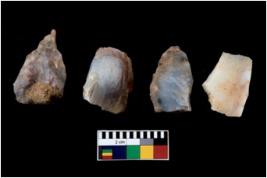 | Description / विवरण | There are n 4 utilized flake cores. There are multi directional irregular scar pattern on them. One has sharp edge and three have blunted edges. |